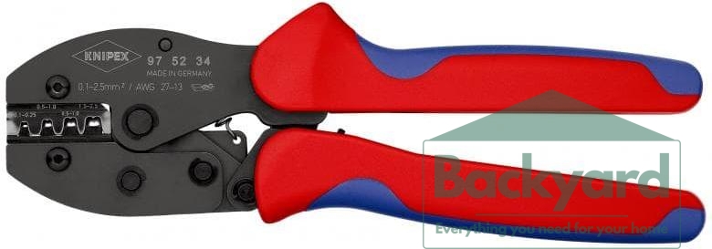 Клещи за кримпване на кабелни накрайници 0.1-2.5мм2 неизолирани, закалени, синьо-червена ръкохватка 220мм, с пружина, Knipex